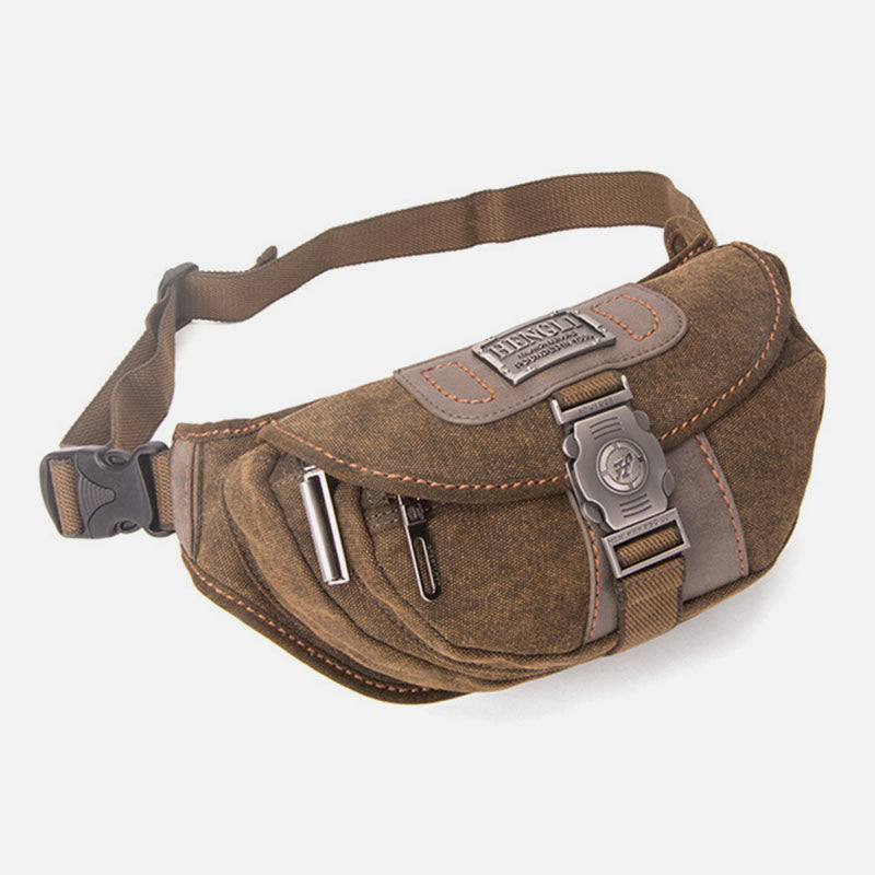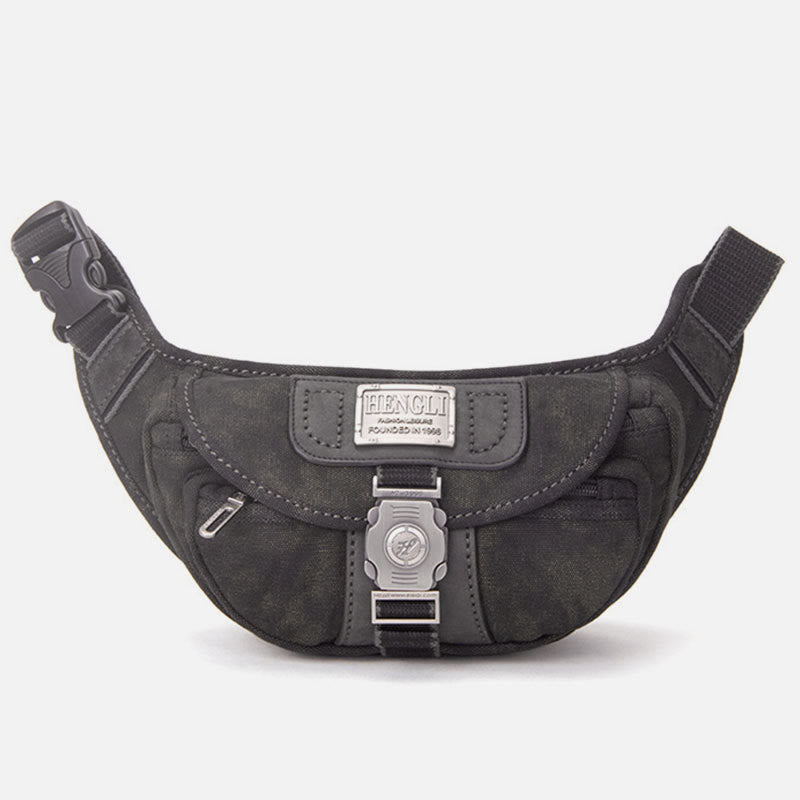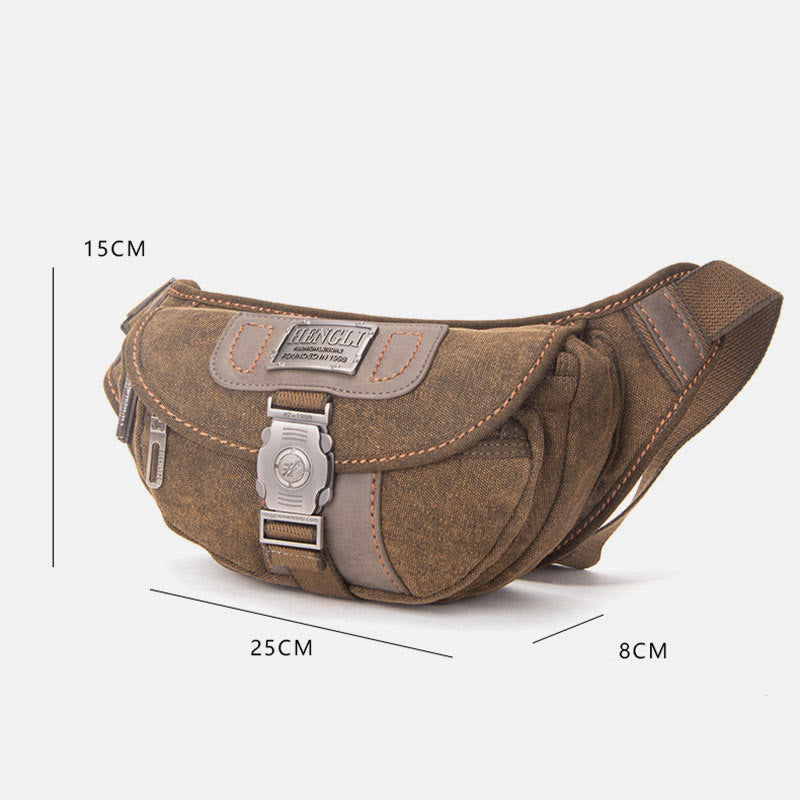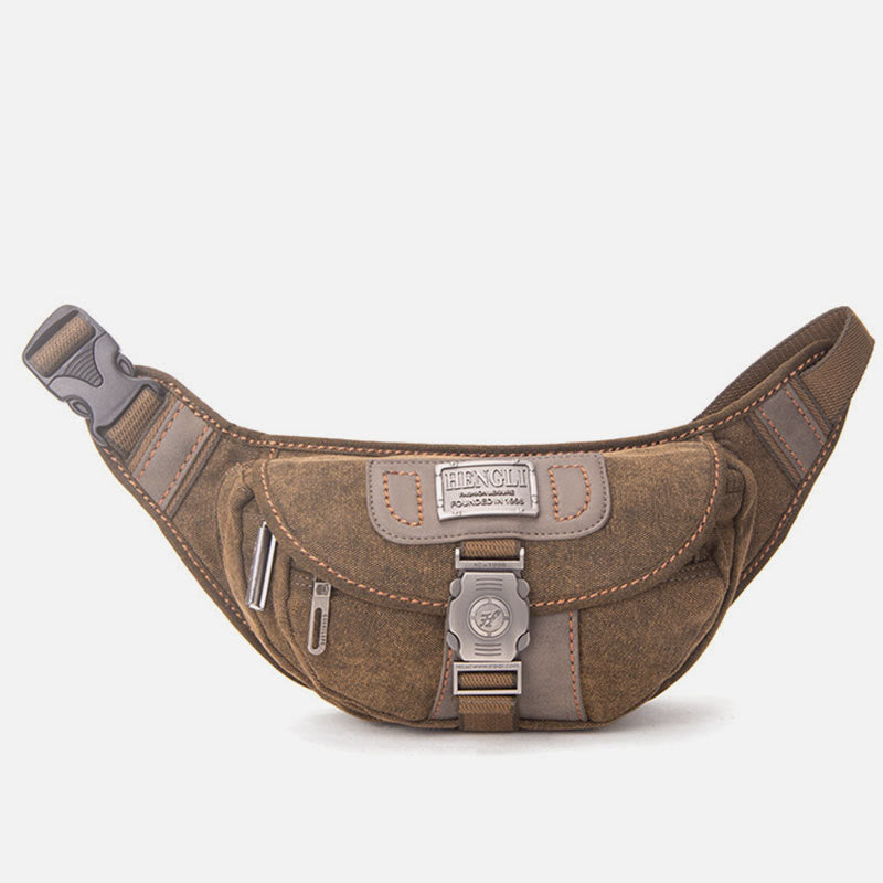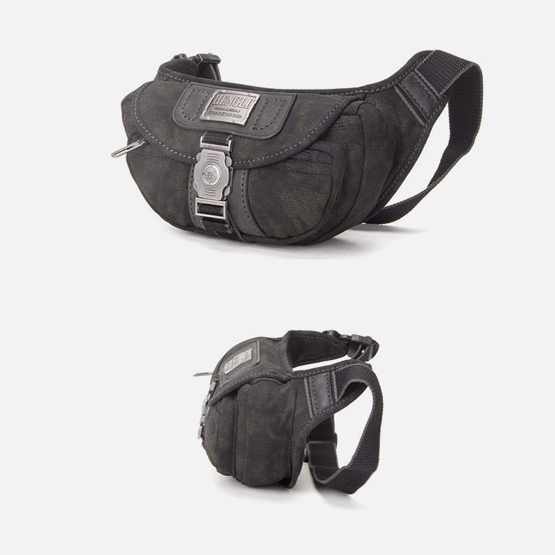The Canvas Waist Pack For Men is the perfect blend of vintage style and modern convenience. Designed for daily use, travel, and outdoor activities, this small crossbody bag offers a unique crescent moon shape for an effortlessly cool and functional accessory. Crafted from durable canvas, it provides ample storage in a compact, easy-to-carry design, ensuring your essentials stay secure and within reach wherever you go.