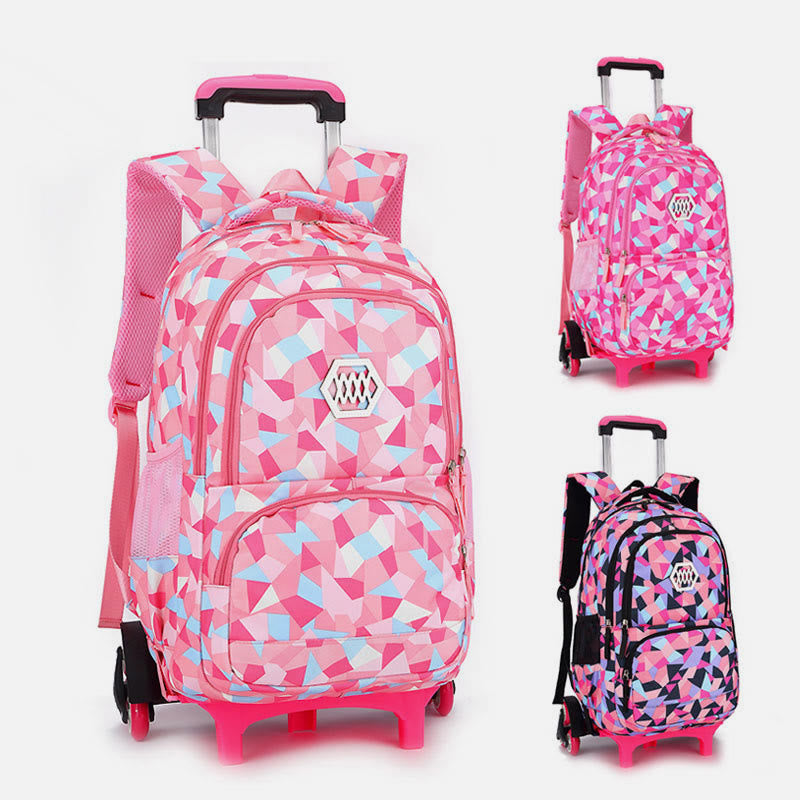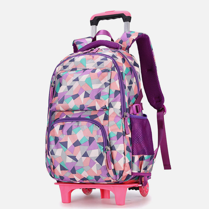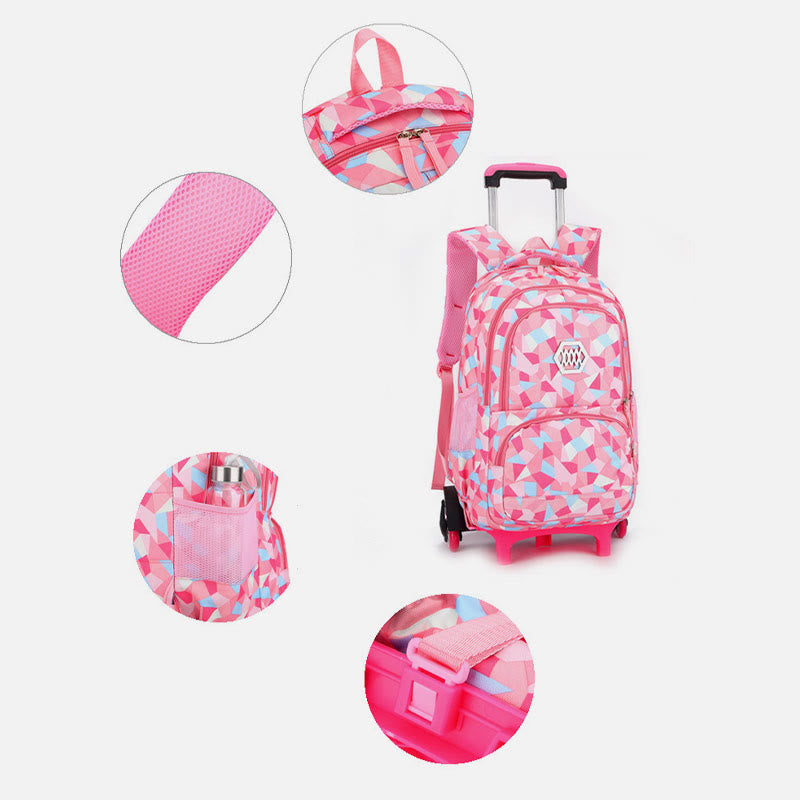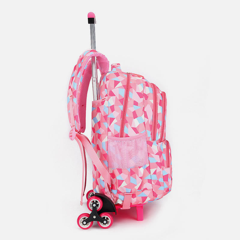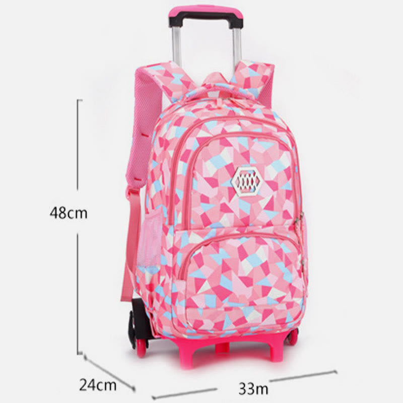 Perfect for active, on-the-go girls, this colorful printing backpack adds fun and functionality to daily school life. With its rolling wheels, spacious design, and durable nylon build, it makes carrying books and school essentials easier and more enjoyable. Whether rolling through the hallways or wearing it as a backpack, this bag is the ideal choice for your little one!