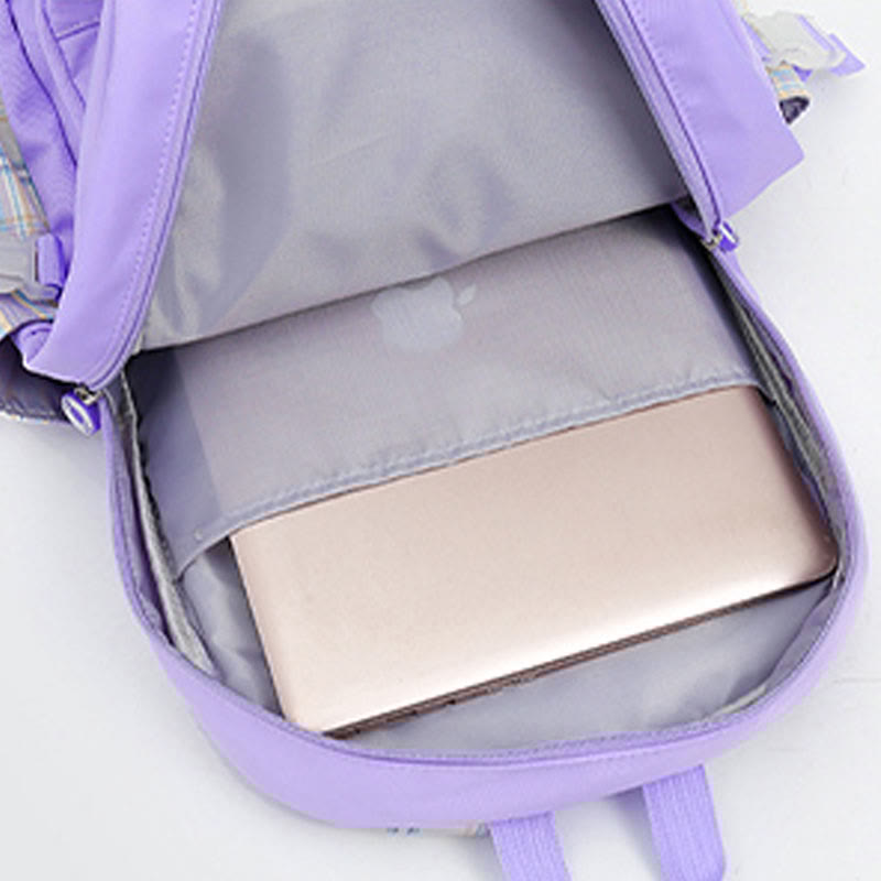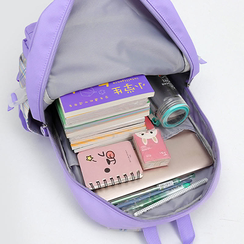 The backpack features a cute pattern that kids will love, making it a fun and stylish accessory for school. Available in Lavender, Pale Turquoise, Black, Cornsilk, and Light Pink colors.