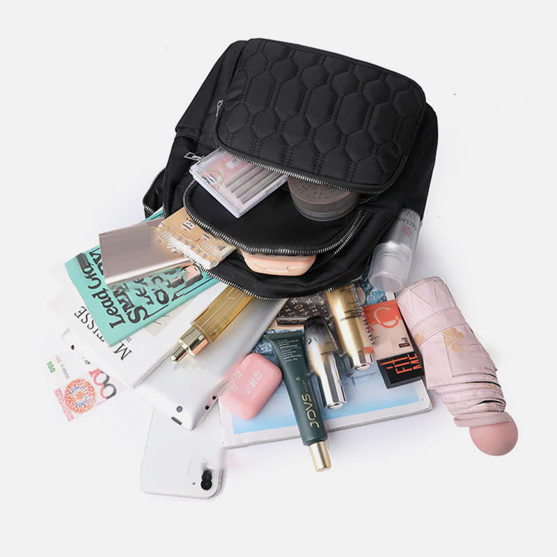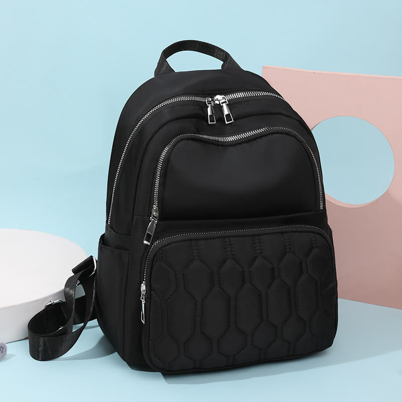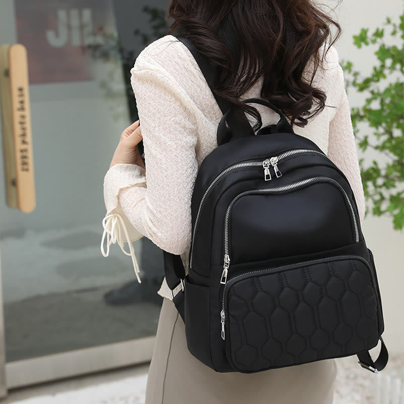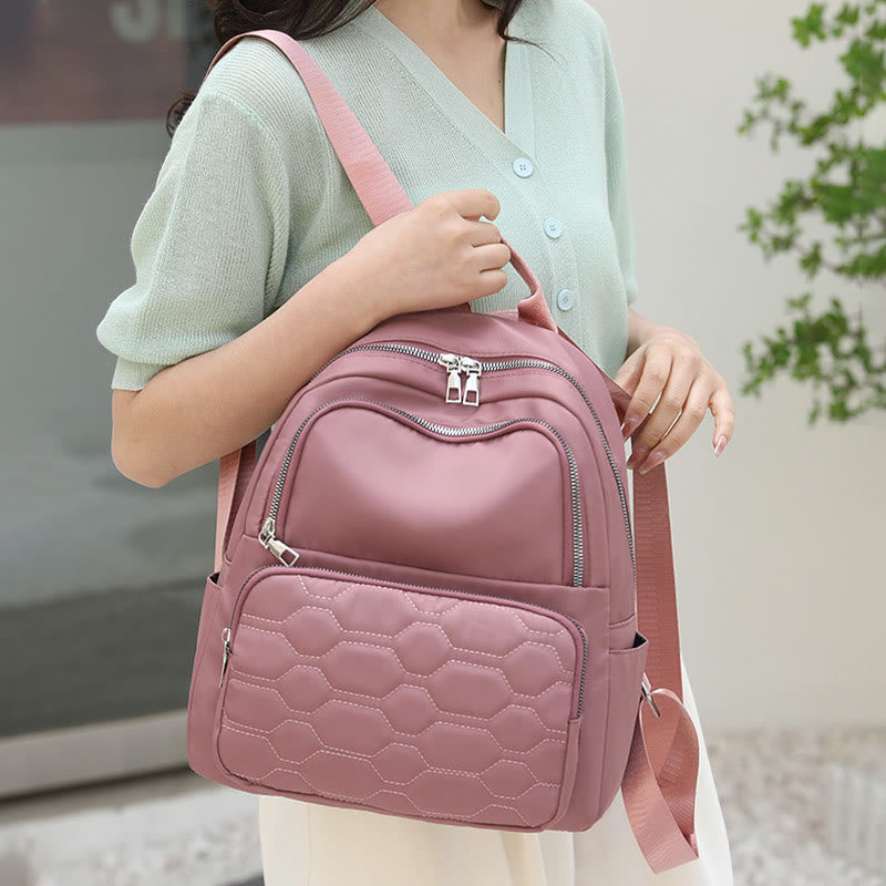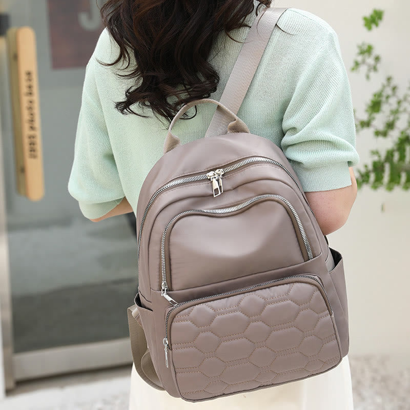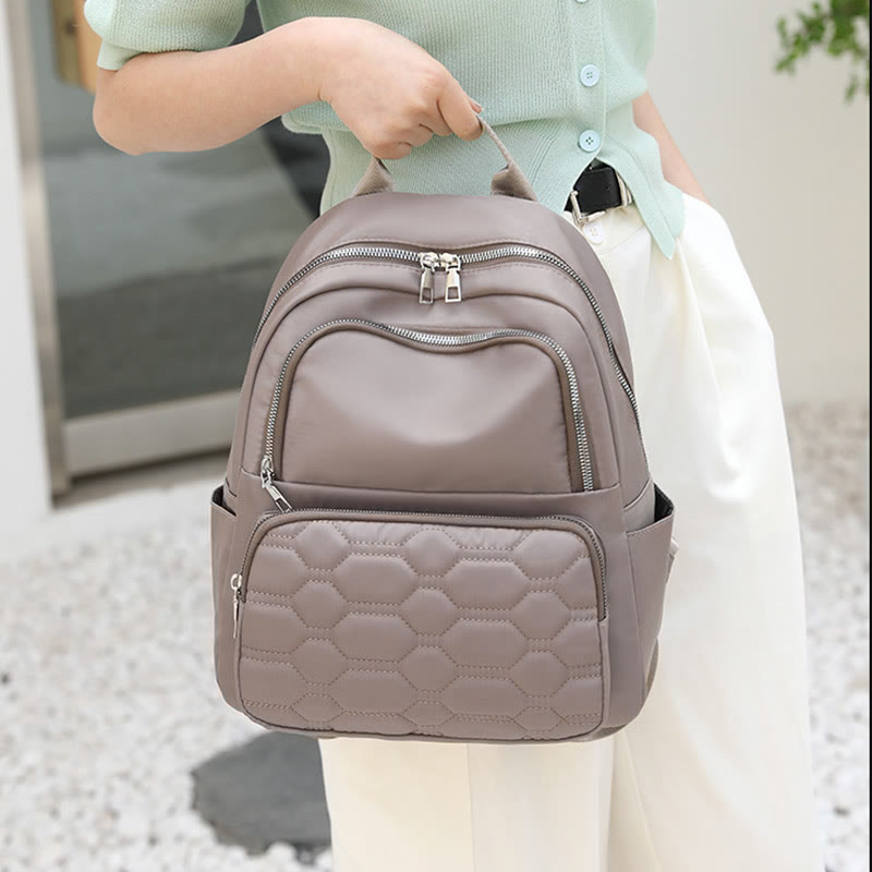 Quilted Nylon Backpack for Women – Stylish Solid Color Travel Daypack