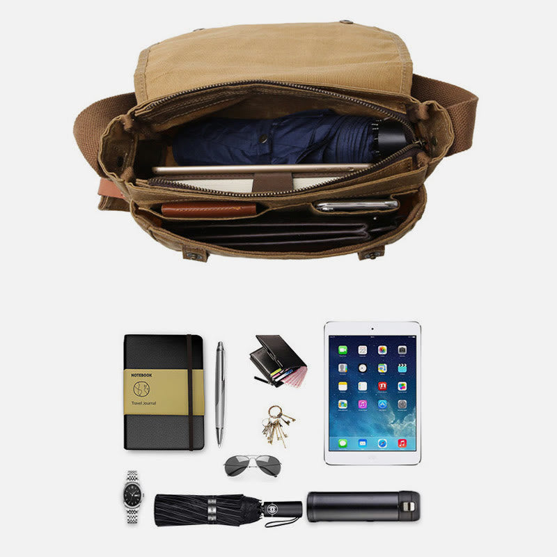 Crafted from durable and waterproof canvas, this messenger bag is built to handle everyday wear and keep your belongings safe from the elements.