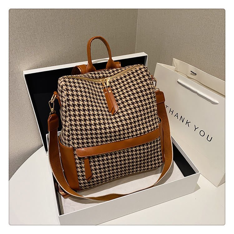 Product Overview: Step up your style with the Oil Painting Canvas Backpack, designed with a unique retro houndstooth pattern that blends art and fashion into one stylish and practical bag. Perfect for students, travelers, and anyone looking for a fashionable yet functional everyday backpack, this bag combines vivid oil painting designs with the classic charm of houndstooth patterns, making it an eye-catching accessory for any occasion.