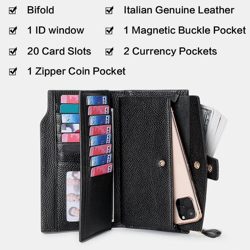 With a large capacity, it includes 3 cash pockets, 20 card slots, and multiple compartments for coins and photos, allowing you to keep everything neatly organized in one place.
