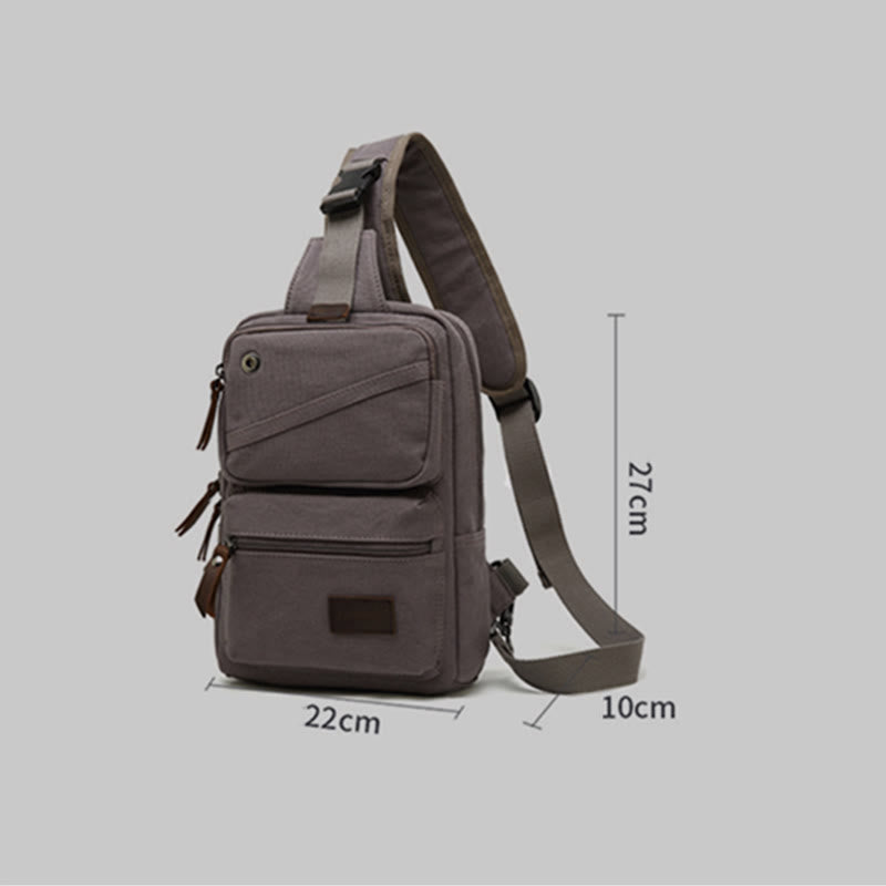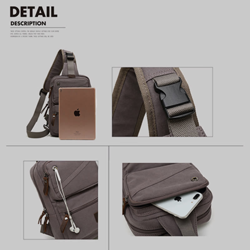 This canvas sling bag can be worn as a crossbody bag, chest bag, or shoulder bag, making it ideal for any occasion. Its stylish design makes it perfect for daily use, sports, or travel.