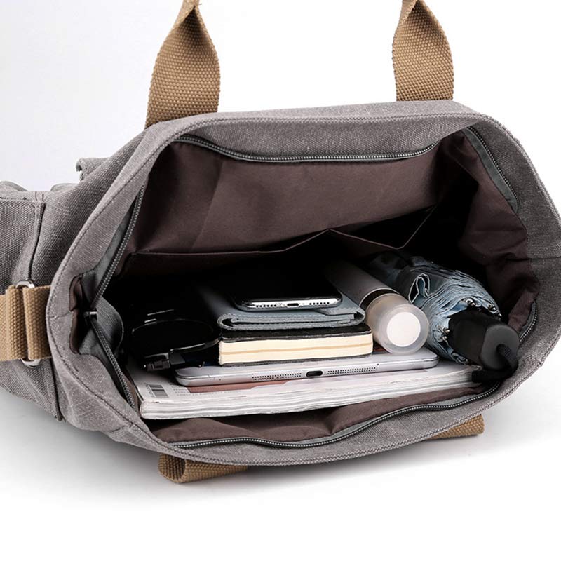 Crafted from sturdy canvas, this bag is built to withstand daily use while remaining lightweight and comfortable to carry.