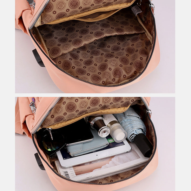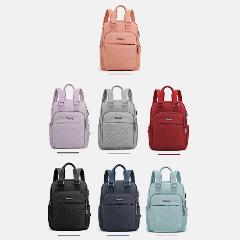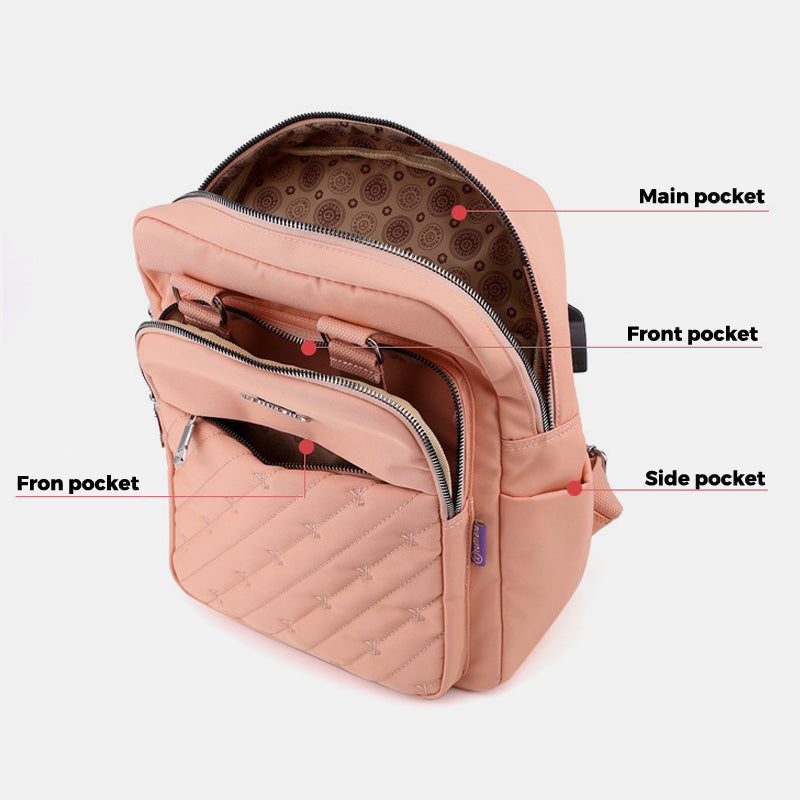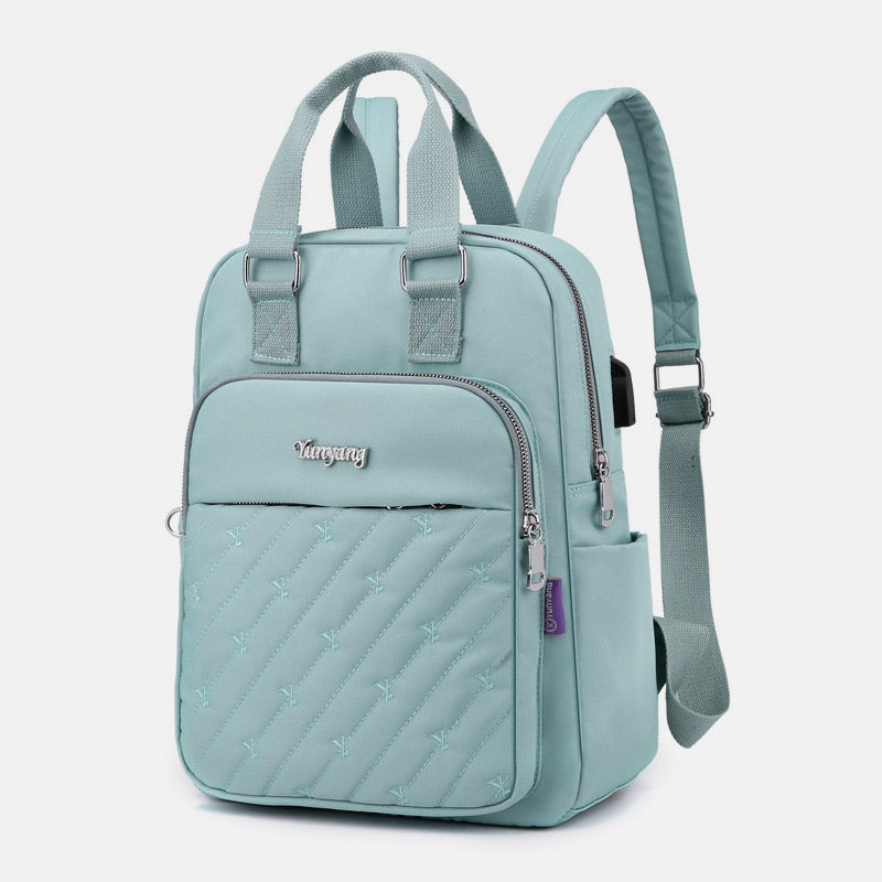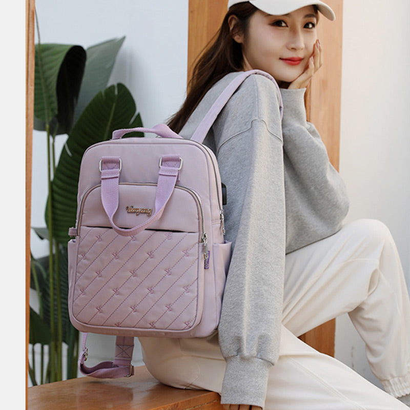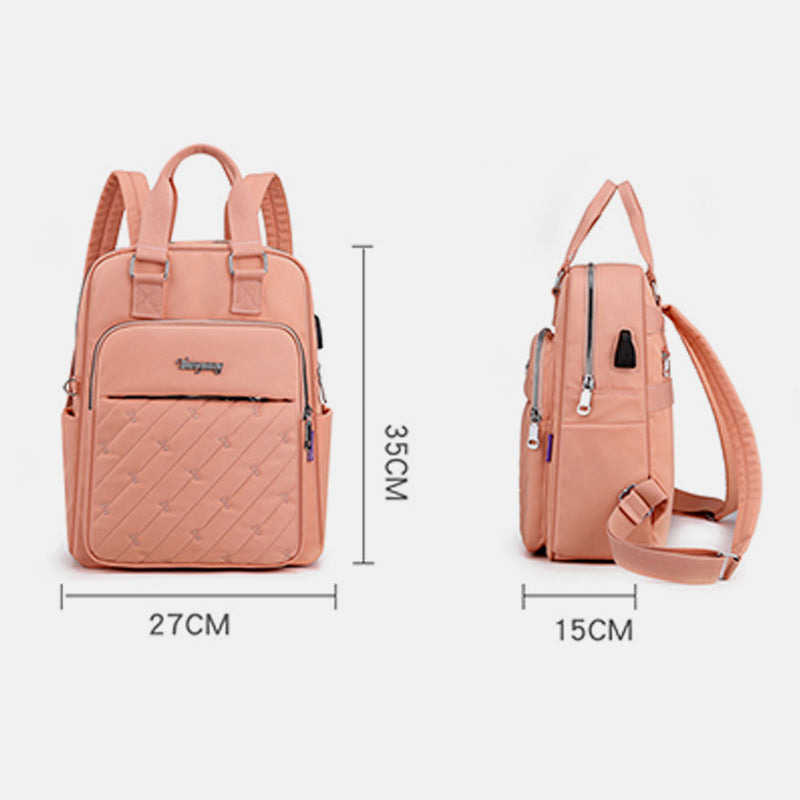 Lightweight Embossed Embroidery Backpack with USB Charging Port – Perfect for Women on the Go