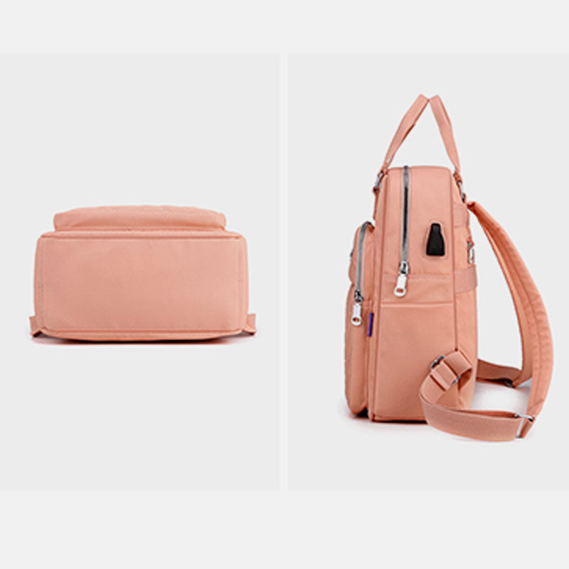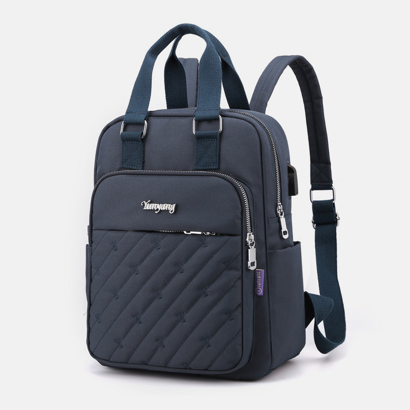 Why Choose the Lightweight Embossed Backpack with USB Charging Port? This backpack isn't just about good looks—it's a functional, stylish solution for today’s busy women. Whether you’re heading to class, commuting to work, or exploring the city, the built-in USB charging port ensures your devices are always powered, while the elegant embroidery makes a statement wherever you go.