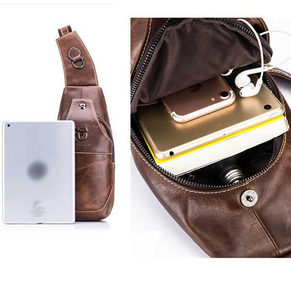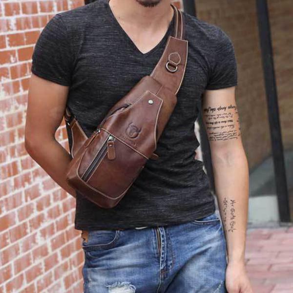 With its timeless design and classic leather finish, this sling bag complements both casual and sporty outfits, adding a touch of rugged sophistication.