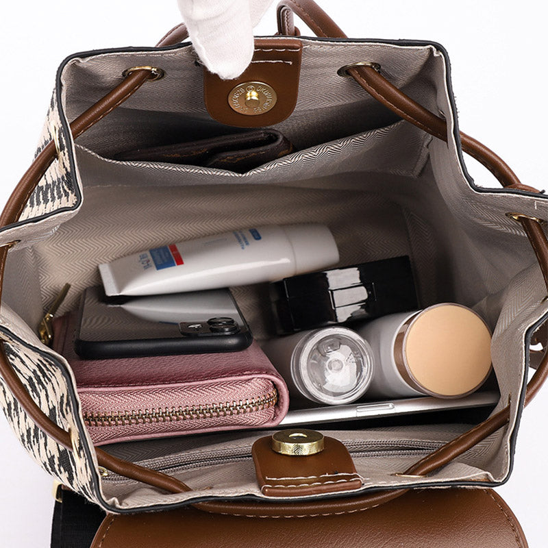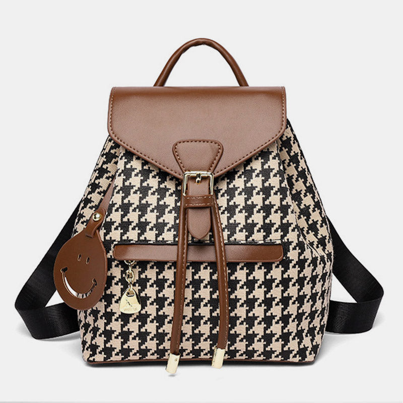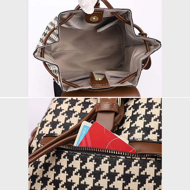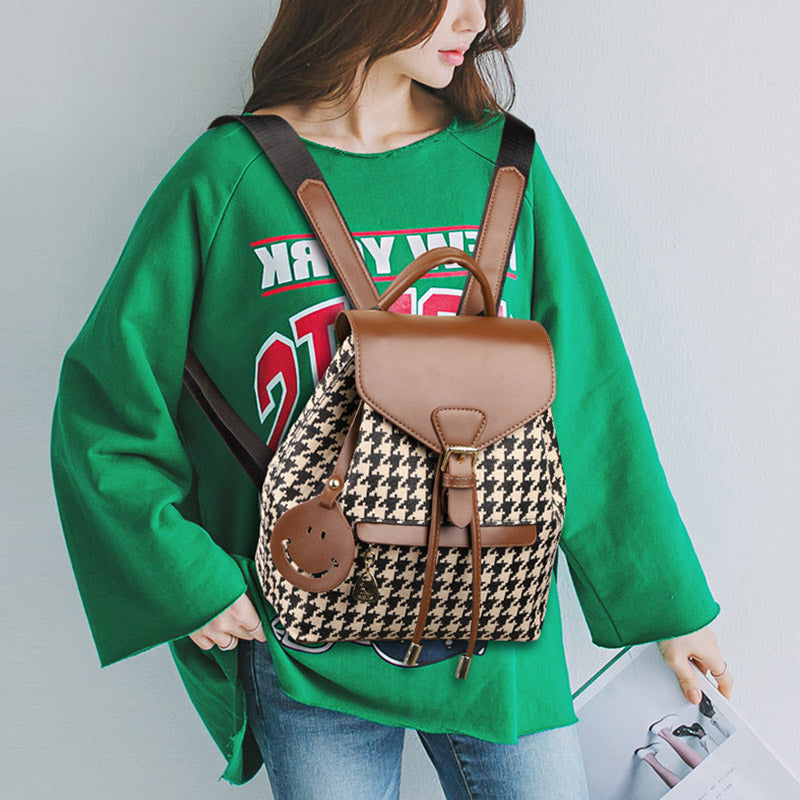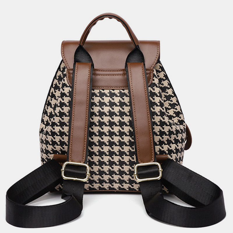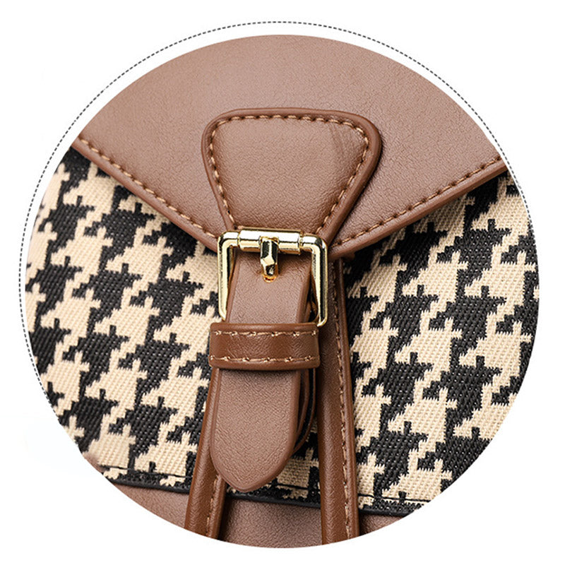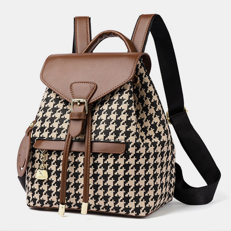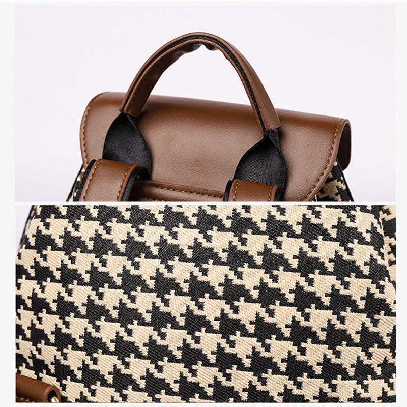 The Women's Mini Backpack Purse offers the perfect balance of style, convenience, and durability. Its houndstooth print gives it a timeless appeal, while the PU leather material ensures it remains soft, sturdy, and versatile. Perfect for those who love a blend of fashion and function.