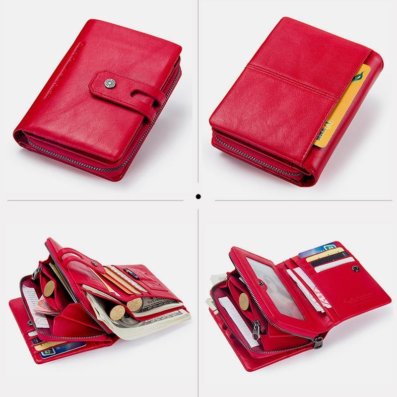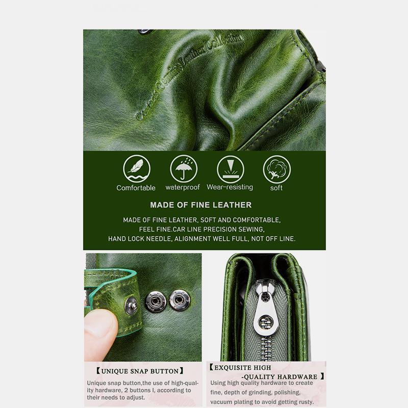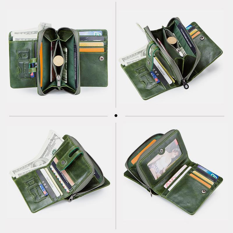 La cartera antirrobo multifuncional de cuero genuino es más que una simple cartera: es una forma compacta, segura y elegante de llevar tus objetos esenciales. La protección RFID integrada mantiene tu información personal segura, mientras que sus múltiples compartimentos facilitan la organización. Ya sea que viajes, trabajes o simplemente estés fuera de casa, esta cartera te garantiza que tus tarjetas, efectivo y monedas estarán siempre a mano y bien protegidos.