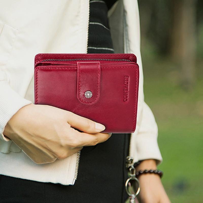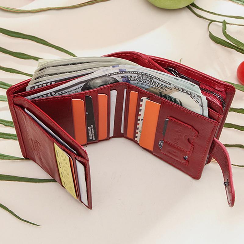 El diseño triple permite una fácil organización y mantiene la billetera lo suficientemente compacta como para caber cómodamente en su bolso o bolsillo.