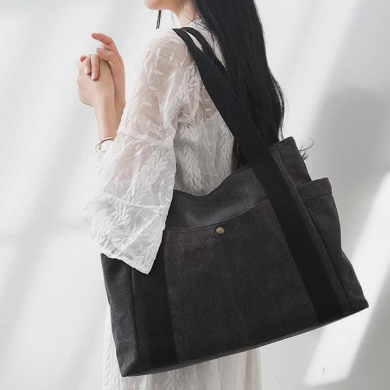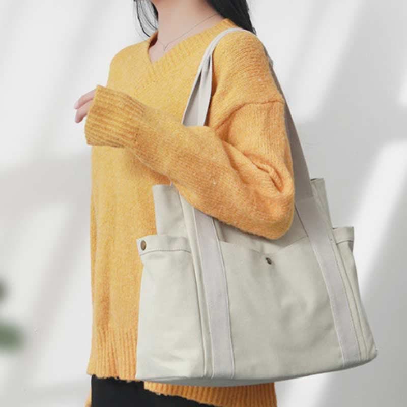 Questa borsa a tracolla in tela di grande capienza unisce stile, funzionalità e resistenza per l'uso quotidiano. Che tu stia facendo shopping, viaggiando o andando al lavoro, questa borsa versatile offre ampio spazio e numerose tasche per mantenerti organizzato.