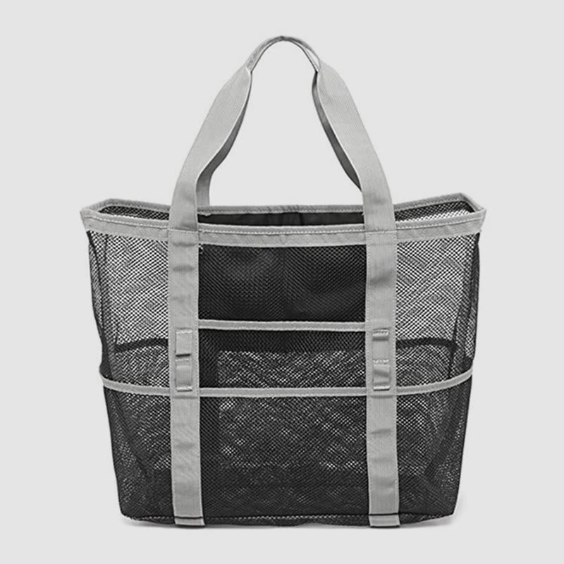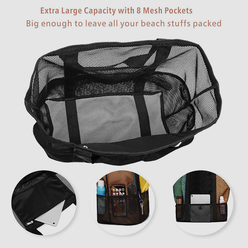 Perfetta per gli amanti della spiaggia e i viaggiatori, questa capiente borsa da spiaggia in rete offre ampio spazio, è abbastanza resistente da resistere a sabbia e acqua e mantiene i tuoi oggetti asciutti e organizzati. Il suo materiale in rete traspirante garantisce una facile manutenzione, mentre il suo aspetto elegante la rende ideale per le giornate in spiaggia, le vacanze o l'uso quotidiano.