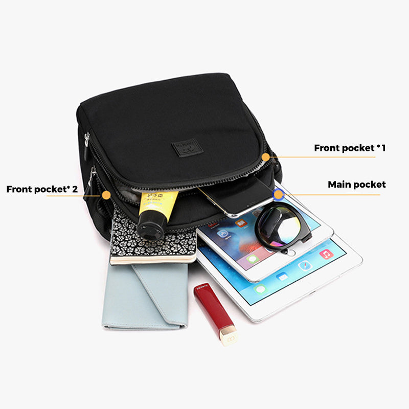 With a well-designed internal structure, this bag offers 1 main pocket, 1 interior zipper pocket, and 2 front zipper pockets, providing plenty of compartments to keep your essentials neatly arranged and easily accessible.