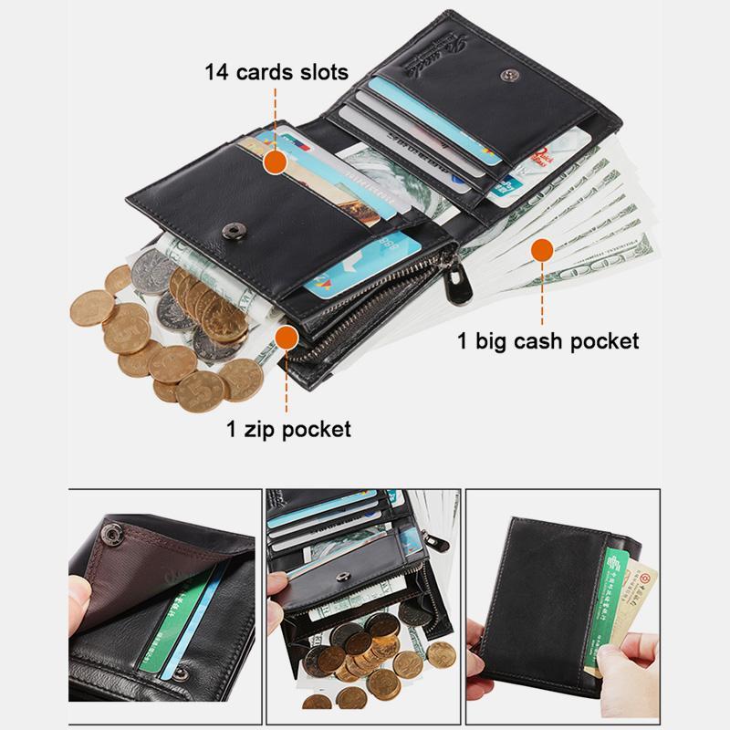 Features 1 large cash pocket, 14 card slots, and 1 zipper coin pocket, ensuring you have ample space for your cash, cards, and small items.