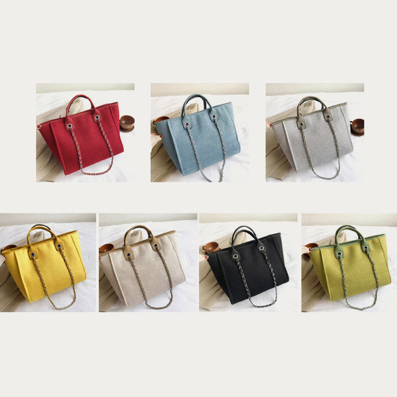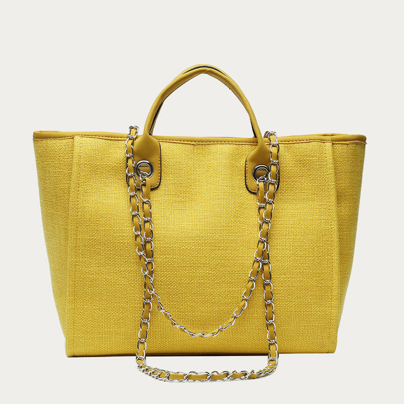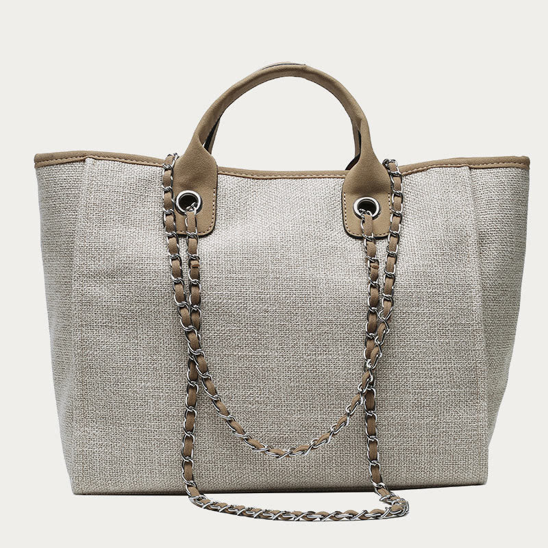 Elevate your accessory game with the Crossbody Canvas Tote for Women. This stylish bucket bag combines the convenience of a crossbody bag with the charm of a tote. Featuring a chic chain strap and made from durable canvas, it's the perfect choice for those who love both fashion and function. Whether you need a bag for daily outings, shopping, or travel, this versatile design has you covered.
