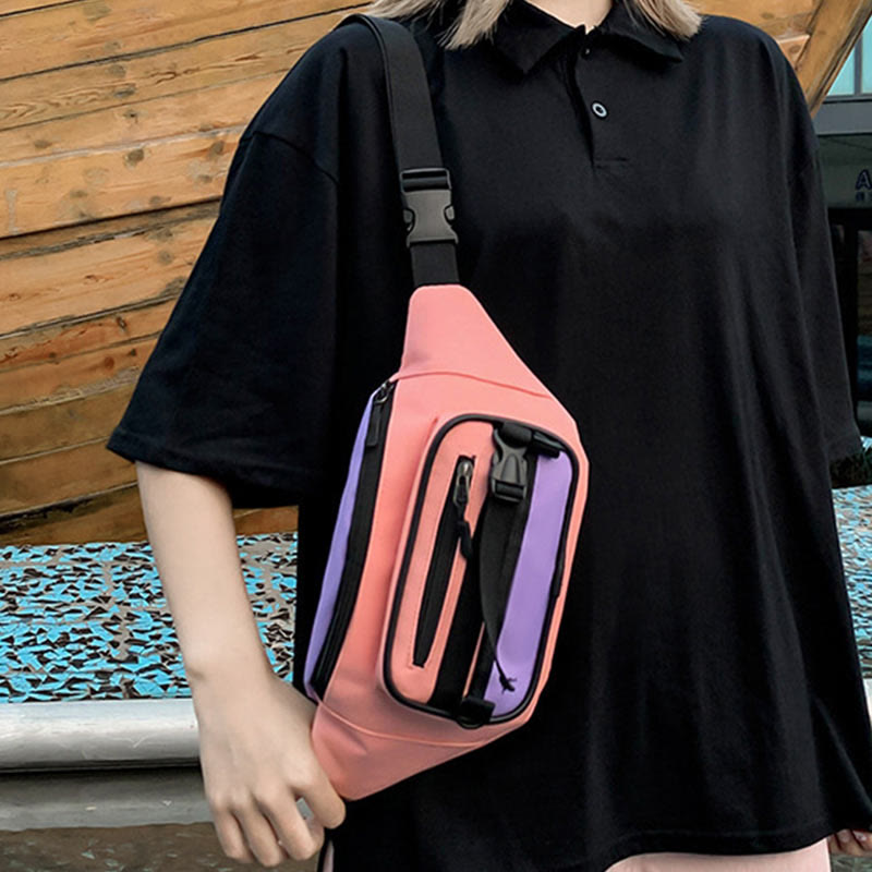 Add a pop of color to your daily adventures with the Contrast Color Crossbody Waist Bag. This stylish canvas chest purse is perfect for girls who want to combine fashion with function. Whether you're heading to school, traveling, or out for a casual day, this bag keeps your essentials organized while offering a trendy look.
