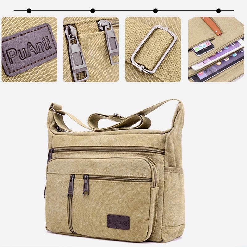 The Vintage Canvas Crossbody Bag combines a robust and stylish design with ample storage and organization, making it perfect for busy professionals and outdoor enthusiasts alike. With a choice of multiple pockets and a sturdy canvas material, this bag offers both functionality and a timeless aesthetic.