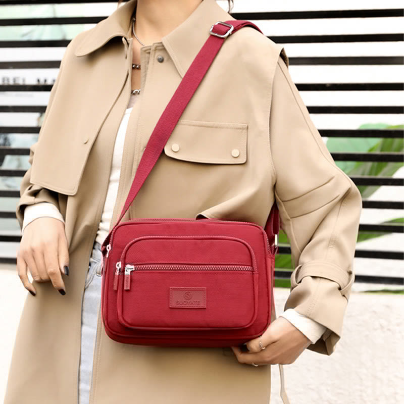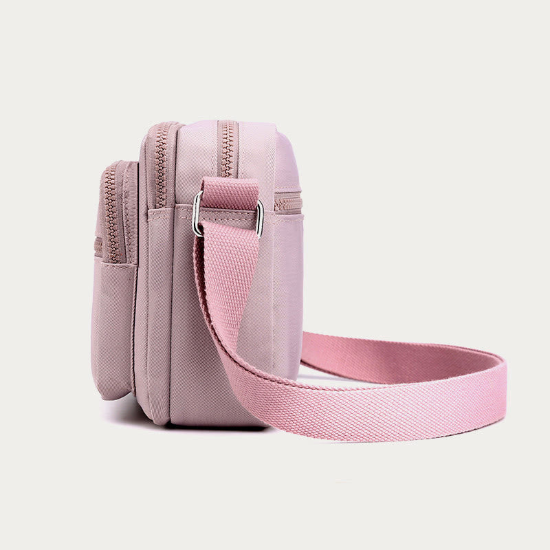 The 4-Zip Crossbody Bag is designed for women who want versatility, convenience, and style in their daily accessories. Made from lightweight nylon, this bag combines multiple compartments for efficient organization and a modern look, making it ideal for travel or daily errands.